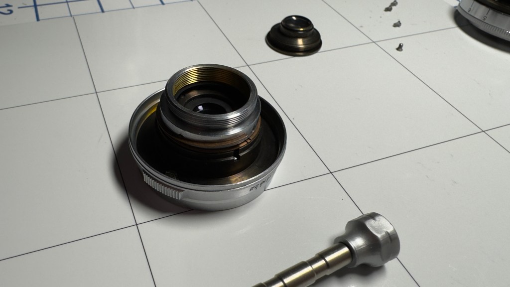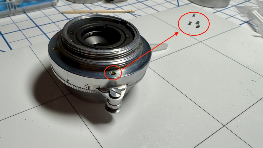 There aren’t a lot of notes online about how to open up this lens, but I did find a fairly exhaustive one by Mark O’Roussa https://markorussa.wordpress.com/2016/01/14/canon-serenar-35mm-f3-5-clean-lubricate-adjust-cla/. I recommend you read his post, and use mine as a secondary reference.