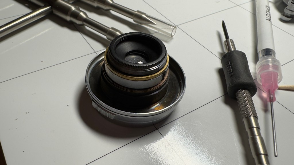 I bought this Canon Serenar 35mm f3.5 LTM (Leica Thread Mount) lens on eBay. Externally it looked great, but there was a strong haze inside so I opened it up to see if I could clean it. This was one of the first lenses I’ve opened so it was a learning experience.